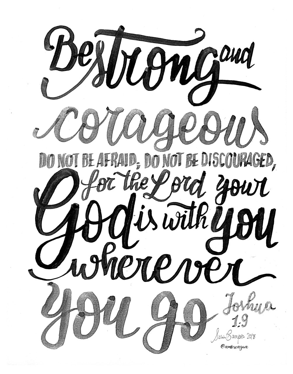 "Be strong and courageous, do not be afraid, do not be discouraged, for the Lord your God is with you wherever you go." Joshua 1:9